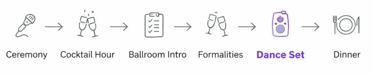 You'll have a planning portal to give us the must plays, do not plays, dinner vibes, and everything in between. We go through pronuciations of names, timing of music, rehearse the special songs.